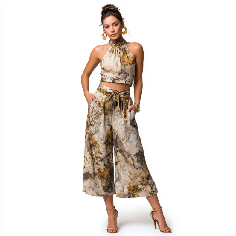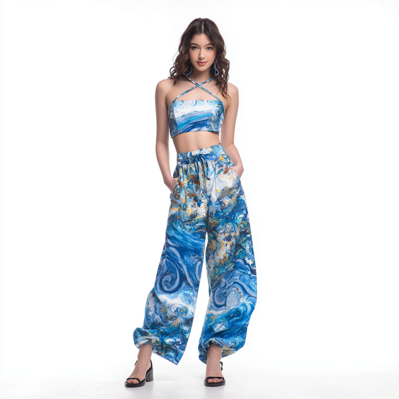 The brand has gained particular recognition for their thoughtfully designed two-piece sets, which offer the convenience of a coordinated look with the flexibility of mix-and-match styling. Their pants collection features everything from relaxed loungewear to tailored office essentials, while their skirt offerings range from playful minis to sophisticated midi lengths.