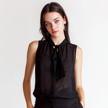 Keep it simple yet elegant with the Good Luck Gem Black Sleeveless Blouse. Made from lightweight polyester, this blouse is perfect for layering or wearing on its own. The timeless black color and sleeveless design make it a versatile addition to your wardrobe, ideal for both work and weekend looks.